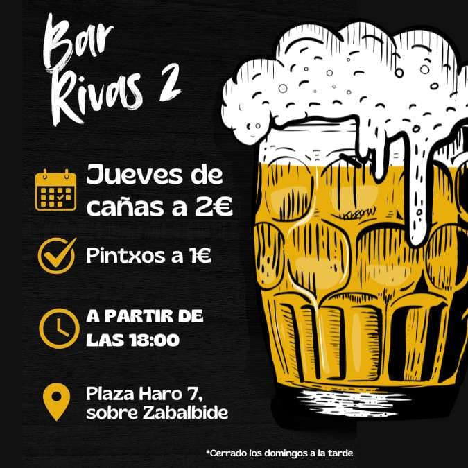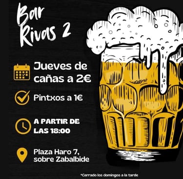 En Bar Rivas 2 siempre hay algo para brindar. Disfruta nuestras ofertas en pintxos y bebidas y vive el mejor ambiente de Zabalbide.